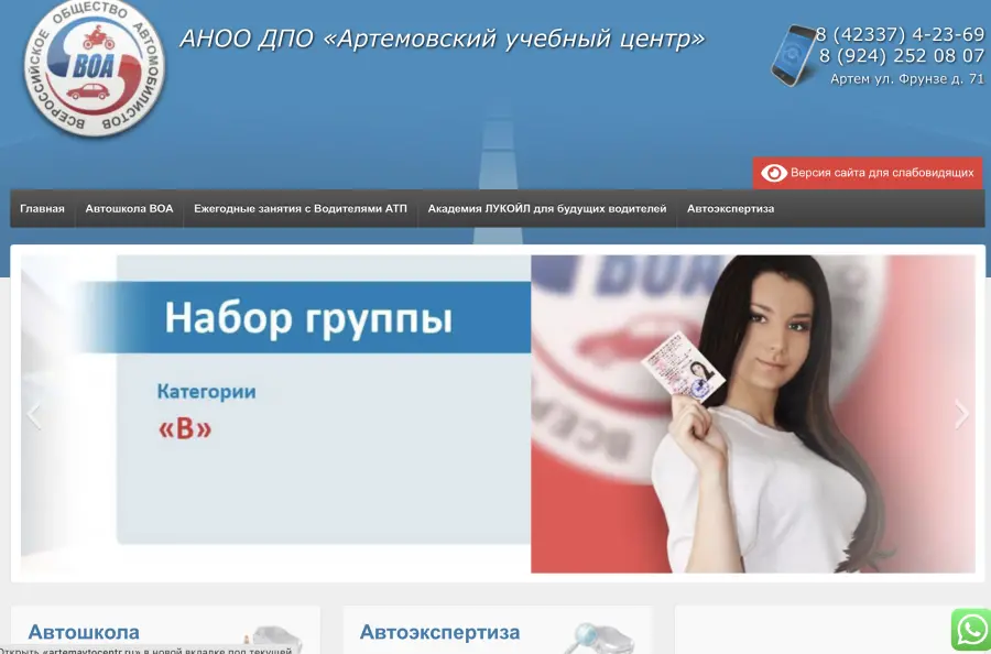 АНОО ДПО «Артемовский учебный центр» (АВТОШКОЛА ВОА) соответствует установленным требованиям.