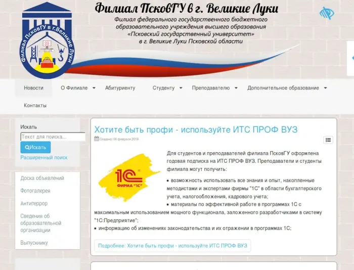 Филиал федерального государственного бюджетного образовательного учреждения высшего профессионального образования «Псковский государственный университет» в г. Великие Луки Псковской области