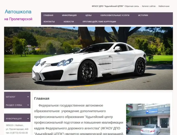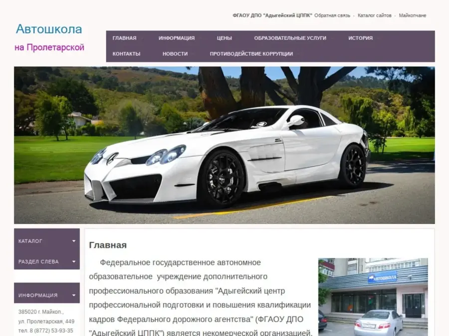 Федеральное автономное учреждение "Адыгейский центр профессиональной подготовки и повышения квалификации кадров Федерального дорожного агентства" (ФАУ "Адыгейский ЦППК") осуществляет подготовку и переподготовку водителей всех категорий.