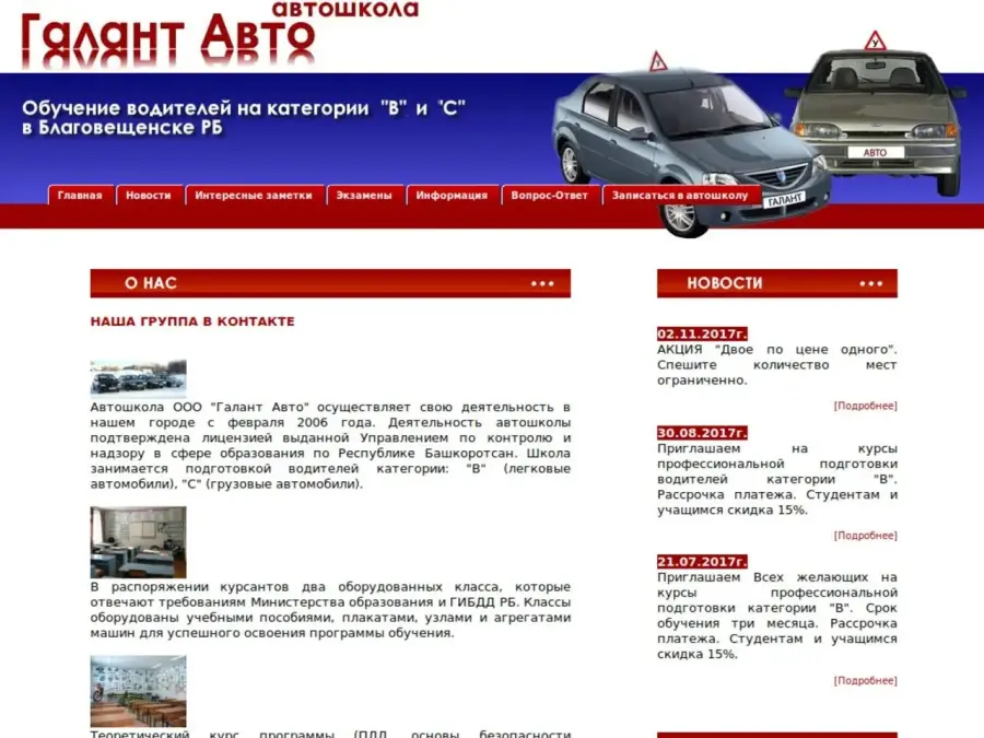 Автошкола ООО "Галант Авто" осуществляет свою деятельность в нашем городе с февраля 2006 года. Деятельность автошколы подтверждена лицензией выданной Управлением по контролю и надзору в сфере образования по Республике Башкоротсан. Школа занимается подготовкой водителей категории: "В" (легковые автомобили), "С" (грузовые автомобили).