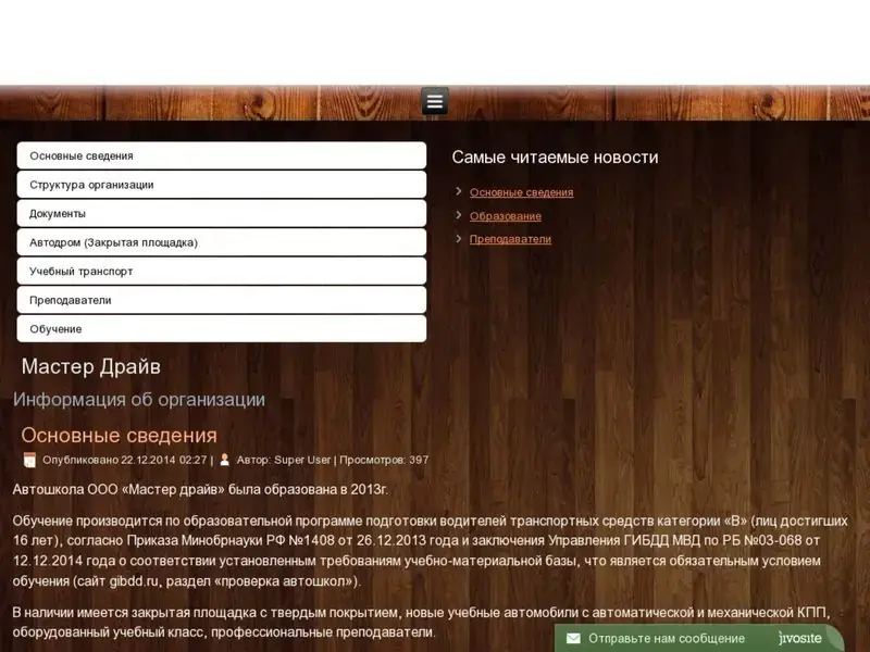 Обучение производится по образовательной программе подготовки водителей транспортных средств категории «В» (лиц достигших 16 лет). наличии имеется закрытая площадка с твердым покрытием, новые учебные автомобили с автоматической и механической КПП, оборудованный учебный класс, профессиональные преподаватели. Для каждого обучающегося в автошколе предоставляется «гибкий» график практического обучения вождению в дневное время (от дома до дома, от места работы до работы), теоретические занятия в вечернее время (в центре города).
