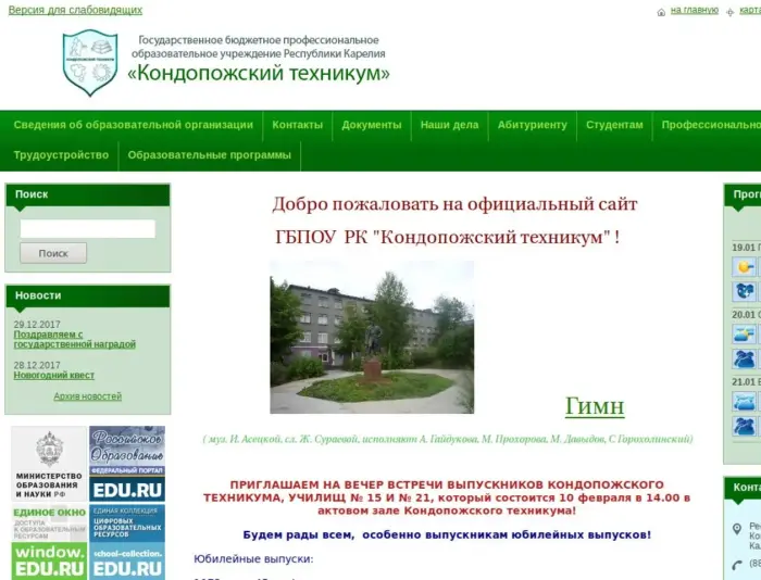 образовательное учреждение среднего профессионального образования Республики Карелия "Кондопожский техникум" (ГБОУ СПО РК "Кондопожский техникум").