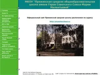 МКОУ "Пряжинская средняя общеобразовательная школа имени Героя Советского Союза Марии Мелентьевой". Подробности по телефону.
