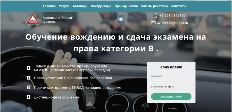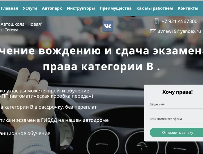 Автошкола "Новая" в г. Сегежа проводит набор учеников в группы по обучению на водительские права категории В. В программу обучения вождению входят - лекции - практические занятия по первоначальным навыкам управления автомобилем - подготовка учеников к успешному прохождению экзамена в ГИБДД. Записывайтесь на обучение вождению и начинайте водить автомобиль категории В на наших практических занятиях.