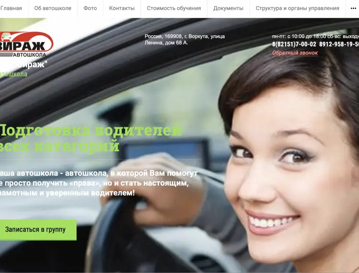Автошкола оказывает услуги по подготовке водителей следующих категорий (и подкатегорий): "М", "А", "А1", "В", "В1", "С", "С1", "D", "D1", "Е". Так же автошкола занимается переподготовкой водителей с "В" на "С", с "В" на "D", с "С" на "В", с "С" на "D".