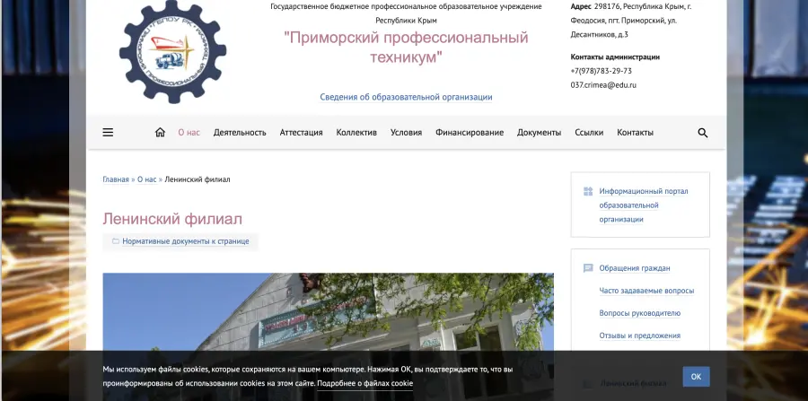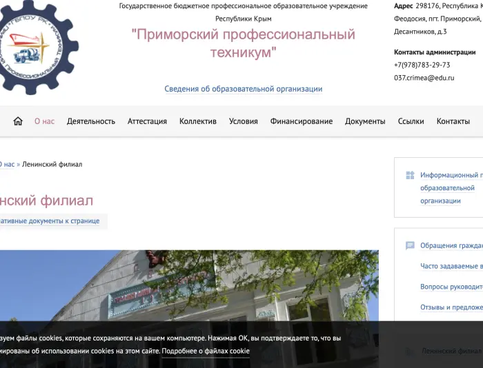 Ленинский филиал ГБПОУ РК «Приморский профессиональный техникум» - современное образовательное учреждение, которое имеет необходимую материально-техническую базу, педагогические кадры, опыт работы по подготовке квалифицированных рабочих и служащих.