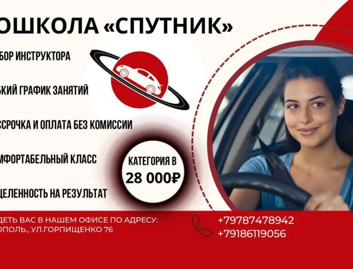 Лучшие педагоги! Переходи на новый уровень! Открой новые возможности вместе с Автошколой «Спутник»! С правами вам больше не придется стоять на остановках и толкаться в забитых маршрутках. Мы научим вас безопасному вождению и уверенно чувствовать себя за рулем. Если за правами, то только в Автошколу «Спутник»! Ждем на обучении! Указанные суммы уже включают в себя все расходы.