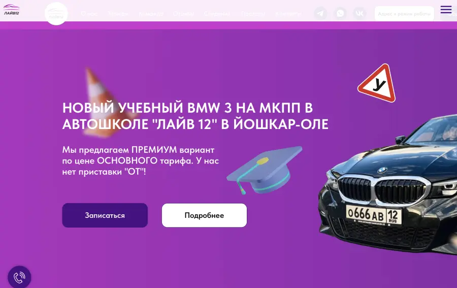 Мы предлагаем ПРЕМИУМ вариант по цене ОСНОВНОГО тарифа. У нас нет приставки "ОТ"!НОВЫЙ УЧЕБНЫЙ BMW 3 НА МКПП В АВТОШКОЛЕ "ЛАЙВ 12" В ЙОШКАР-ОЛЕ