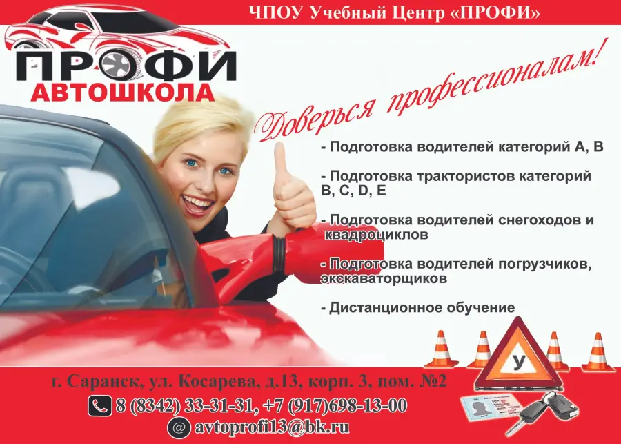Автошкола "ПРОФИ" проводит профессиональную подготовку водителей категорий "А" и "В", а также водителей квадроциклов, снегоходов, трактористов-машинистов всех категорий, водителей погрузчиков, машинистов экскаватора, катка, бульдозера, автогрейдера!