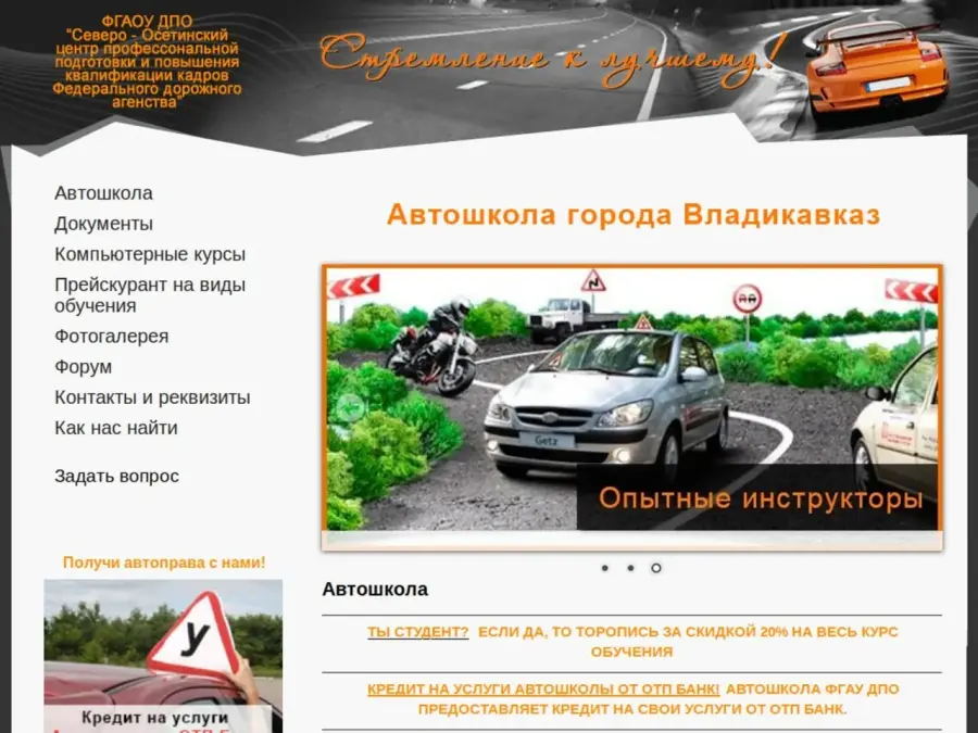 Федеральное автономное учреждение Северо-осетинский центр профессиональной подготовки и повышения квалификации кадров Федерального дорожного агентства.