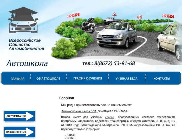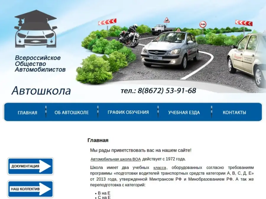 Автомобильная школа ВОА действует с 1972 года. Школа имеет два учебных класса, оборудованных согласно требованиям программы «подготовки водителей транспортных средств категории А, В, С, Д, Е» от 2013 года, утвержденной Минтрансом РФ и Минобразованием РФ. Классы оснащены иллюстрированными стендами, комплектами DVD дисков с обучающей программой, компьютерными тренажерами. Практические занятия проходят на оборудованном автодроме и на дорогах города, с опытным инструктором – водителем.