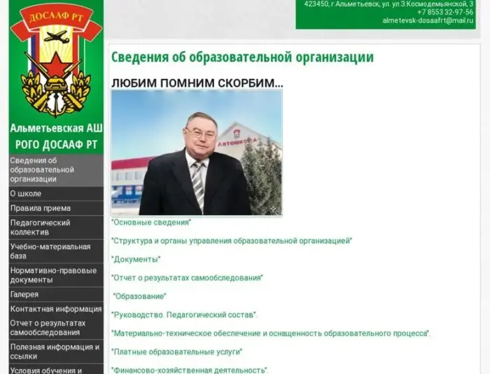 Альметьевская автошкола (ДОСААФ) РТ на рынке образовательных услуг работает с декабря 1957 года. Основная задача перед коллективом стояла подготовка водителей дизелистов для Вооруженных Сил и кадров массово технических профессий. Развитие авиационных и технических видов спорта, военно-патриотического воспитания молодежи и готовности к защите Родины. Летом 1958 года состоялся первый выпуск двух групп водителей дизелистов для Вооруженных Сил. В настоящее время Альметьевская автошкола имеет бессрочную лицензию, выданную Министерством образования Республики Татарстан, учебные программы и планы по подготовке водителей транспортных средств всех категорий. Учебно-материальная база: это классы по изучению устройства и эксплуатации автомобиля, классы по изучению ПДД и БД, классы лабораторно практических занятий по Устройству и ТО автомобилей. Имея образовательную программу и квалифицированные преподавательские кадры, на базе автошколы ведется подготовка водителей категории «С» по ВУС «837» военный водитель по заказу Министерство Обороны РФ. Для осуществления этой подготовки кроме классов по устройству и техническому обслуживанию автомобилей имеется парк грузовых автомобилей повышенной проходимости КАМАЗ 4310 УРАЛ 43202 ГАЗ 3308 УАЗ 3151 и автодром с элементами для военного водителя: «железно-дорожная платформа, левые правые косогоры, габаритные тоннели, эстакада, площадка для загрузки боеприпасов и т.д.»