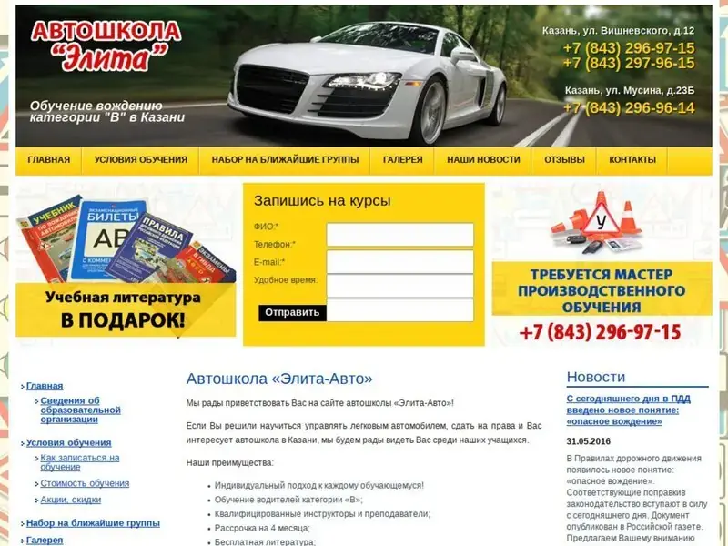 Мы прикладываем все усилия, чтобы обучение в автошколе соответствовало современным требованиям. Используя методы поэтапного обучения, с обязательным контролем освоения каждого этапа, внедряя в учебный процесс новые технологии с максимально доступной и наглядной подачей материала, мы делаем обучение в автошколе приятным и увлекательным. Мы раскрываем все сильные и слабые стороны каждого из учеников, поэтому все правила вождения усваиваются ими максимально эффективно. Теоретический материал преподается в комфортабельных, светлых и просторных классах, которые имеют все необходимое для эффективного обучения. Таким образом, наша автошкола в Казани предоставляет прекрасную основу для полноценного усвоения всего теоретического материала. Формы обучения: дневная, вечерняя, по выходным. Наша автошкола всегда формирует удобный график обучения вождению, чтобы каждому ученику было удобно посещать курсы вождения в свободное время. Занятия проходят в выходные дни, а также в будние дни по вечерам, так как в остальное время большинство наших учеников занято учебой или работой. Таким образом, вы максимально удобно и быстро сможете научиться уверенно водить автомобиль и быстро принимать решения в нестандартных ситуациях на дороге. Так же мы очень надеемся, что вас приятно удивят наши низкие цены на обучение. Сравните их с предложениями наших конкурентов, и убедитесь, что нам нет равных по соотношению цена/качество. Все это позволяет нашим учащимся, окончив курсы вождения, которые организует наша автошкола, сдать на права и получить водительское удостоверение категории «В» без проблем. Мы также можем предложить рассрочку, помощь в возврате 13%.