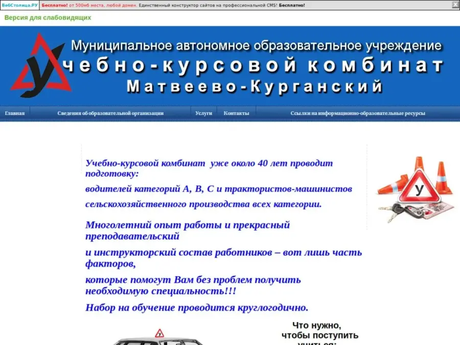 Учебно-курсовой комбинат уже около 40 лет проводит подготовку: водителей категорий A, B, C, E и трактористов-машинистов сельскохозяйственного производства категории С. Многолетний опыт работы и прекрасный преподавательский и инструкторский состав работников – вот лишь часть факторов, которые помогут Вам без проблем получить необходимую специальность!!! Набор на обучение проводится круглогодично.