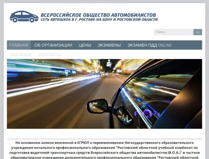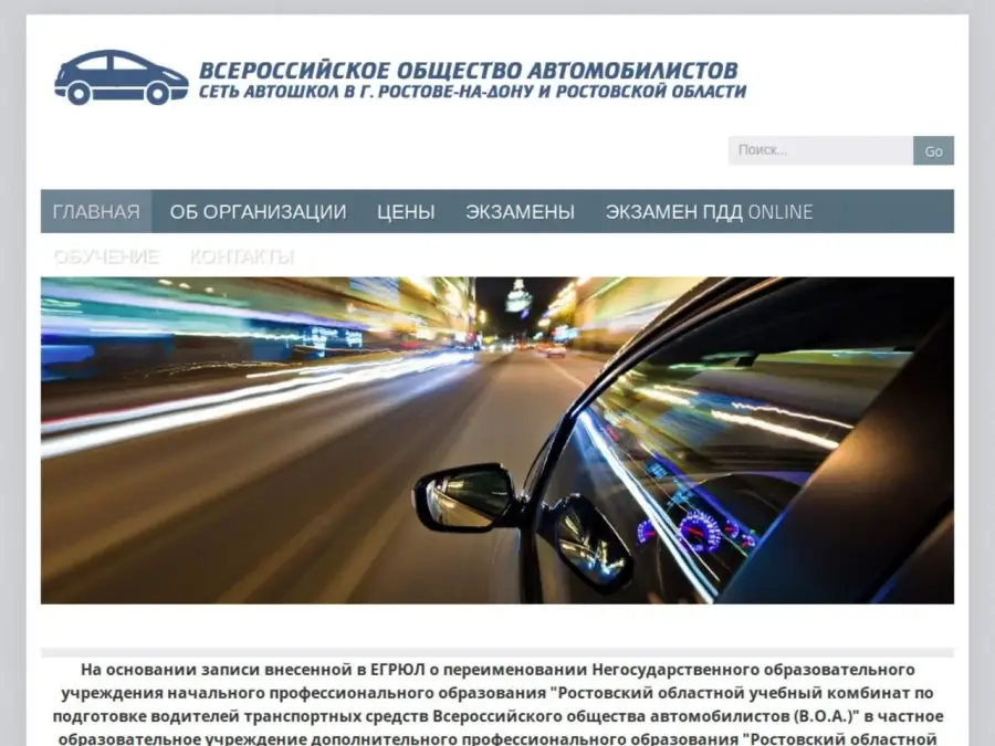 ЧОУ ДПО " Ростовский областной учебный комбинат по подготовке водителей транспортных средств Всероссийского общества автомобилистов (В.О.А.) " ( ранее ВДОАМ) основан в январе 1980 г. на базе Ростовской автошколы.