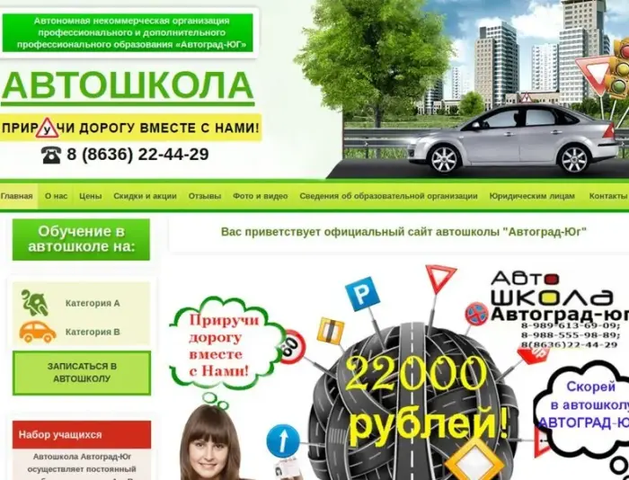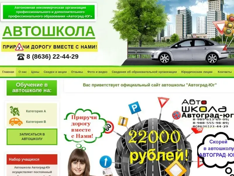 Наша автошкола с большим опытом работы на рынке образовательных услуг осуществляет обучение вождению и подготовку водителей категорий: А, В, повышение квалификации. Подробности по телефону.