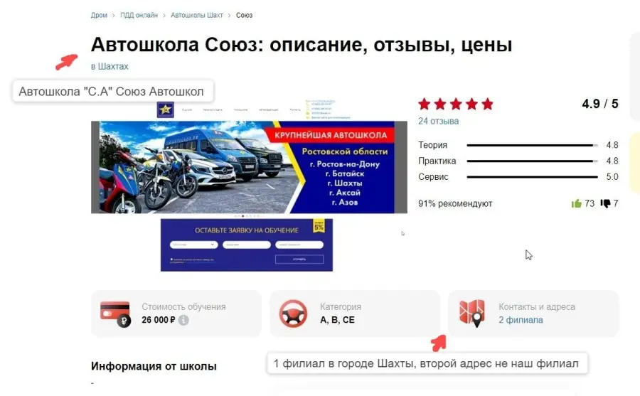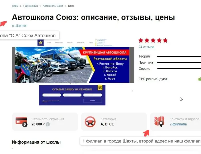 Широкий ассортимент дополнительных услуг для автовладельцев: Индивидуальное вождение на МКПП и АКПП; Замена водительского удостоверения; Договор купли-продажи автомобиля; Направление на техосмотр и ОСАГО; Карты для тахографа; и другие услуги для автовладельцев. Мы не боимся сравнений!