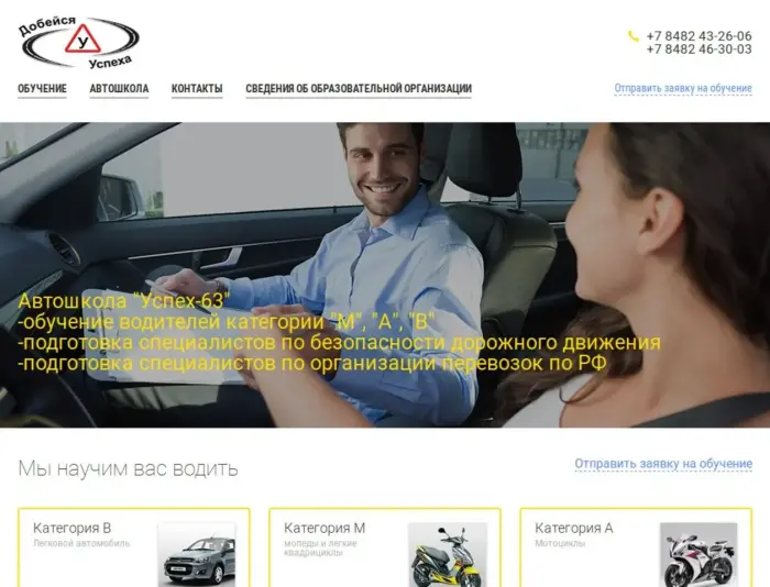 НОУ "Автошкола Успех" реализует образовательные программы профессиональной подготовки водителей категорий "B" и "BE".