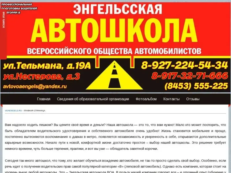 Вам надоело ходить пешком? Вы цените своё время и деньги? Наша автошкола — это то, что вам нужно! Мало кто может поспорить, что быть обладателем водительского удостоверения и собственного автомобиля очень удобно! Жизнь становится мобильнее и проще, постепенно вытесняются воспоминания о давках в метро, появляется независимость и уверенность в себе, открываются дополнительные карьерные возможности. Начало пути к новой, комфортной жизни достаточно простое – выбор нашей автошколы. Это решение требует немного времени, чуть больше терпения, практики, и вот вы уже — обладатель заветной корочки. Сегодня так много автошкол, что тому, кто желает обучиться вождению автомобиля, не так-то просто сделать свой выбор. Особенно, если речь идет о получении водительских прав самой популярной категории «В» (легковой автомобиль). Однако есть компания, которая стоит на уровень выше любой автошколы. Это – Энгельсская автошкола ВОА. В пользу нашей компании говорит все – и огромный опыт (обучение у нас прошли уже десятки тысяч людей), и превосходное оборудование.