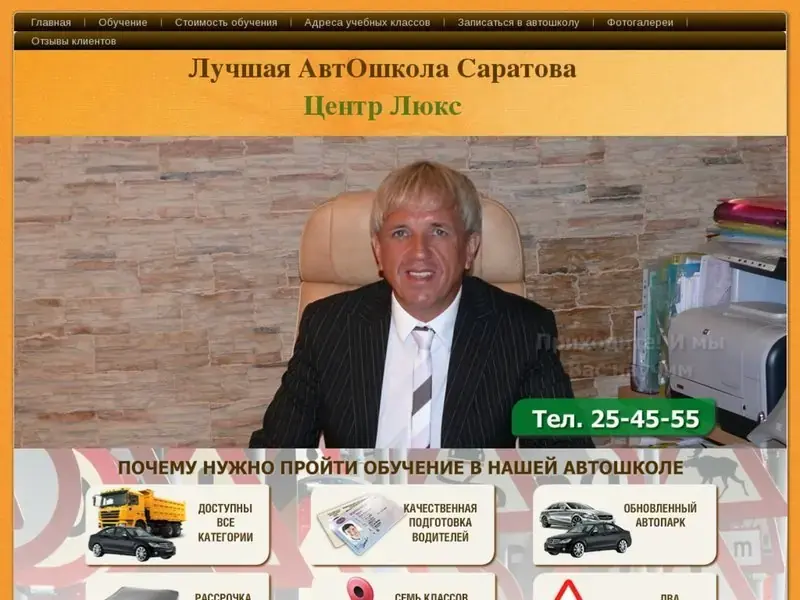 ЧОУПП АвтОшкола «ЦентрЛюкс» - одна из самых крупных автошкол Саратова, которая работает на рынке обучения вождению транспортных средств с 1 ноября 2004г. За время своего существования автошкола обучила тысячи водителей и к 2008 году стала одной из лучших и крупнейших автошкол Саратовской области. Автошкола «ЦентрЛюкс» предлагает широкий спектр услуг, как для физических, так и для юридических лиц. Мы осуществляем подготовку водителей транспортных средств категории «А», «В», «С», «Д», «ВЕ», «СЕ», а также подкатегорий «А1», «С1». Для уже имеющих «права» разработаны курсы уверенного вождения в современных условиях города и курсы безопасного вождения на АКПП.