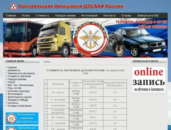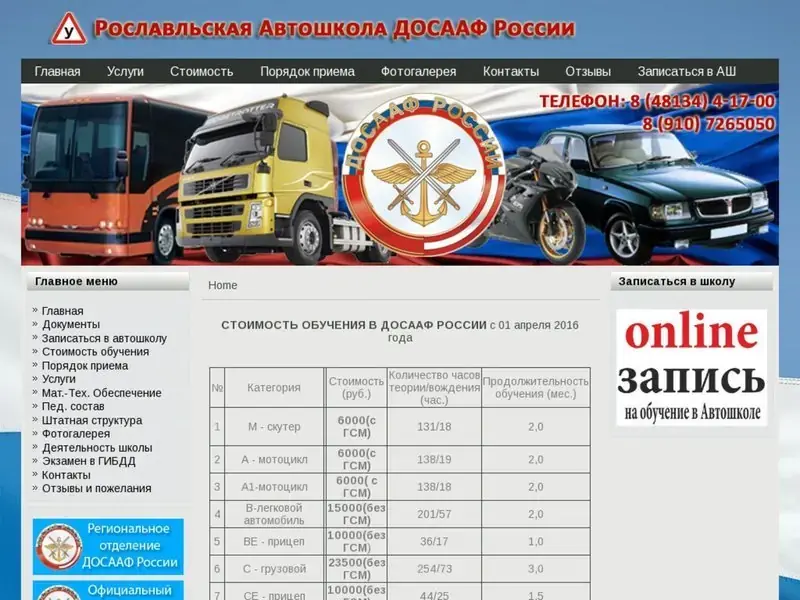 Рославльская автомобильная школа. Подробности по телефону.