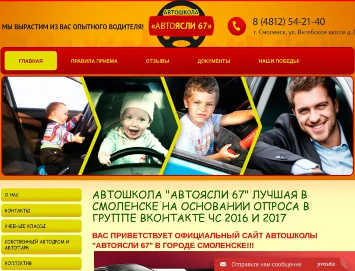 Основной принцип работы автошколы " Автоясли 67" - ответственность перед нашими учениками! У нас работают высококвалифицированные преподаватели теоретического курса, опытные инструктора практического обучения вождению с большим стажем работы. Поэтому у нас имеется все необходимое для полноценного обучения вождению «с нуля»: профессиональные преподаватели и инструкторы, площадка для отработки навыков практического вождения. Практическая часть обучения вождению включает в себя вождение на автодроме и в городе. Благодаря наличию собственной закрытой площадке вы сможете еще до выезда в город отработать все те навыки, которые понадобятся вам в плотном потоке машин и избавитесь от страха перед вождением. Это научит вас парковаться (параллельная парковка, заезд в гараж, разворот в ограниченном пространстве, габаритная змейка ) и чувствовать габариты машины.