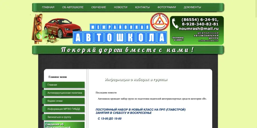 Автошкола проводит набор групп по подготовке водителей автотранспортных средств категории «В». ПОСТОЯННЫЙ НАБОР В НОВЫЙ КЛАСС НА ПРП (ГЛАВСТРОЙ)