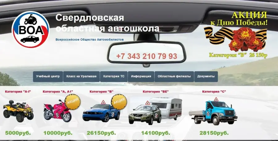 Негосударственное образовательное учреждение «Свердловская областная автошкола Всероссийского Общества Автомобилистов» уже более 40 лет занимается подготовкой водителей транспортных средств различных категорий. Автошкола распологается в Чкаловском районе города Екатеринбурга на улице Походной 84. В собственности автошколы находится административное здание с оборудоваными классами для подготовки водителей , а так же собственный оборудованный автодром ,расположенный рядом с автошколой.Сдача Экзамена в ГИБДД и выдача водительских удостоверений проходит в автошколе. Учредителями автошколы являются: Центральный совет «Всероссийского Общества Автомобилистов города Москвы» и «Свердловское региональное отделение Всероссийского Общества Автомобилистов» (ВОА).Порядка полутора тысяч человек ежегодно проходят обучение в «Свердловской областной автошколе ВОА», выпускаются и становятся полноценными участниками дорожного движения.Существует сеть филиалов в крупнейших городах Свердловской области таких как: Нижний Тагил, Ревда, Арамиль.В активе школы многочисленные награды и дипломы, полученные за высокое качество обучения на столь нелёгкую, но, в то же время, такую интересную и любимую профессию — водитель!В июле 2011-го года «Свердловская областная автошкола ВОА » успешно прошла очередное лицензирование в министерстве общего и профессионального образования Свердловской области, в подтверждении чего получена лицензия серия 66 № 001688 на бессрочный срок.В сентябре 2014 года НОУ "Свердловская областная автошкола ВОА " успешно прошла процедуру согласования с ГИБДД рабочих программ подготовки водителей ТС категории : "А","А1","В","ВЕ","СЕ",переподготовка с категории "В" на категорию "С".