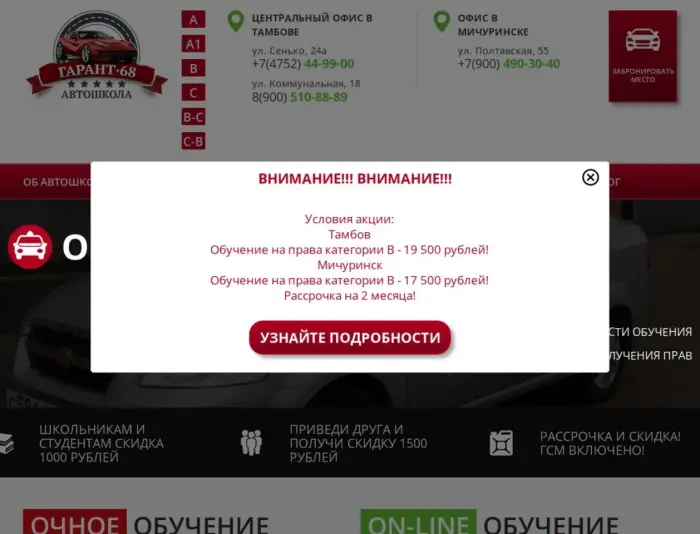 Автошкола «ГАРАНТ» занимается профессиональной подготовкой водителей транспортных средств категории «В». Основная задача Автошколы «ГАРАНТ» - обучение безопасному управлению транспортными средствами за счёт современных и эффективных образовательных технологий, высокого профессионального уровня преподавательского состава. МЫ ПРЕДЛАГАЕМ: - профессиональное обучение правилам дорожного движения;