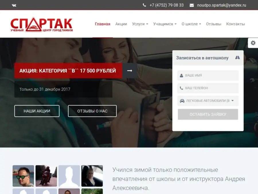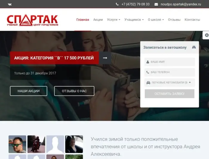 "Наши профессиональные инструкторы и преподаватели помогут вам быстро и легко изучить правила дорожного движения, основы первой медицинской помощи, и научат чувствовать себя уверенно за рулем. Занятия проводятся в классах, оборудованных стендами для наглядного изучения правил дорожного движения, устройства автомобиля. Занятия ведутся с использованием мультимедийной и компьютерной техники, для наглядности используются анимационные обучающие материалы. Под чутким руководством инструкторов автошколы «Спартак» в городе Тамбове вы получите хороший опыт вождения автомобиля в оживленном городском потоке, научитесь основным маневрам, парковке, сможете почувствовать себя уверенно на дороге и получить настоящее удовольствие от процесса вождения. В нашем учебном центре вы также можете пройти профессиональную подготовку судоводителей судов и получить право на управление маломерными судами. Занятия ведут преподаватели, имеющие богатый опыт не только в обучении и подготовке судоводителей, но и в управлении различными речными и морскими судами. Если вы хотите получить специальность частного охранника, тогда курсы по профессиональной подготовке частных охранников 4-го – 6-го разрядов в НОУ ДПО «Учебный центр «Спартак» - это то, что вам нужно."