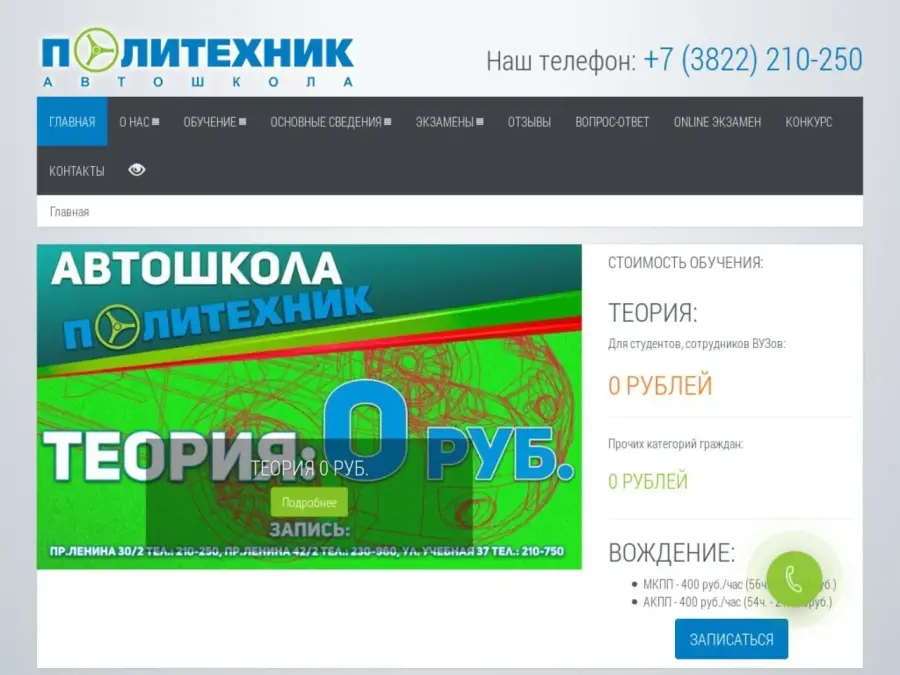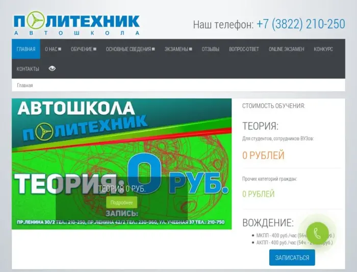 Мало кто может поспорить, что быть обладателем водительского удостоверения и собственного автомобиля очень удобно! Жизнь становится мобильнее и проще, постепенно вытесняются воспоминания о давках в автобусе, появляется независимость и уверенность в себе, открываются дополнительные карьерные возможности. Начало пути к новой, комфортной жизни достаточно простое - автошкола. Автошкола Политехник начала свою работу в городе Томске в 2008 году. В настоящее время наша автошкола является членом МААШ (Межрегиональная Ассоциация Автошкол, г. Москва), а так же является действующим членом НП Сибирской ассоциации автовладельцев и автошкол (г. Томск). Визитной карточкой нашей компании стал широкий выбор услуг и скидок, предоставляемых студентам и сотрудникам ВУЗов. Автошкола предоставляет клиенту максимальную возможность выбора условий обучения (графика посещения теоретических и практических занятий, услуги юриста, страхового агента и т.д.). Обучение водителей на категорию «В» проводится по современной методике в любой форме обучения (2, 5 месяца - вечерняя; 2, 5 месяца - воскресная). Автошкола «Политехник» обеспечивает обучающихся классами, оснащенными мультимедийным оборудованием, учебными макетами, библиотекой, видеоматериалами.