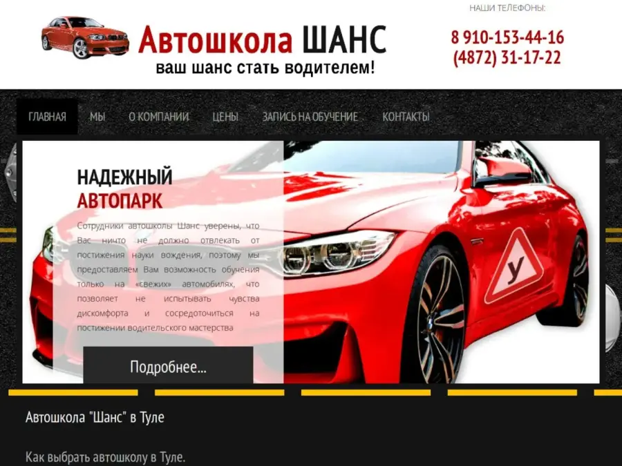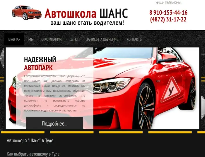 - постоянно совершенствуемая материально-техническая база автошколы, обновляемый парк учебных автомобилей. Главная цель автошколы «Шанс» заключается в том, чтобы подготовить будущих водителей не только к успешной сдаче теоретического и практического экзамена в ГИБДД, но и к безопасному и грамотному управлению транспортным средством в условиях интенсивного городского движения.