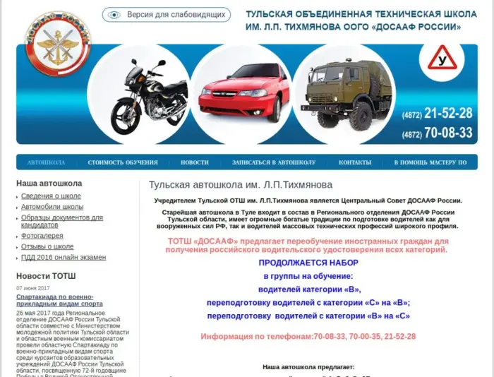 Тульская объединённая техническая школа им. Л.П. Тихмянова является самой старейшей автошколой в Туле, имеет огромные богатые традиции по подготовке водителей как для вооруженных сил РФ, так и водителей массовых технических профессий широкого профиля.