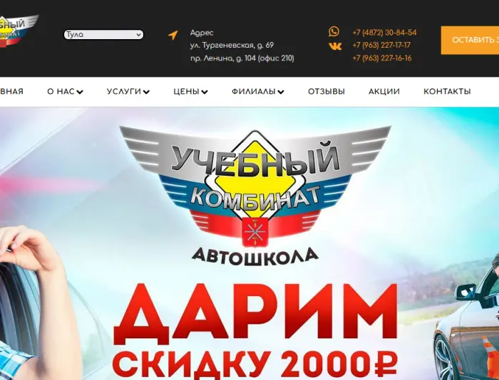 Автошкола “Учебный Комбинат” является современной автошколой, которая осуществляет подготовку водителей всех категорий (А, В, С, D, Е, М, EB, EC, B1). “Учебный Комбинат” располагает современным автопарком, собственной учебно-материальной базой, включающей в себя учебные классы для теоретических занятий, современный компьютерный класс, мастерскую для ремонта и обслуживания учебных автомобилей. Наши аудитории оборудованы в соответствии с требованиями программ для подготовки водителей всех категорий. Все учебные планы разработаны с учетом требований программ, утвержденных Министерством образования, Министерством транспорта и ГИБДД России. Комплектация учебных групп по всем направлениям и программам обучения производиться ежедневно. Формируются вечерние, дневные группы, а также группы выходного дня.