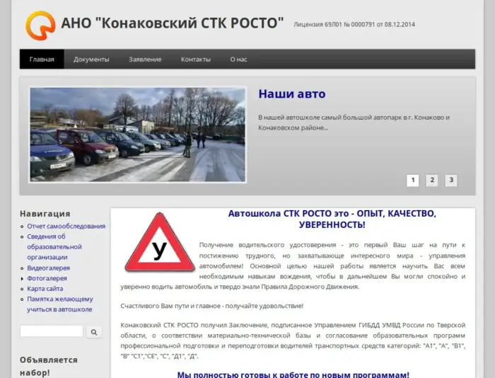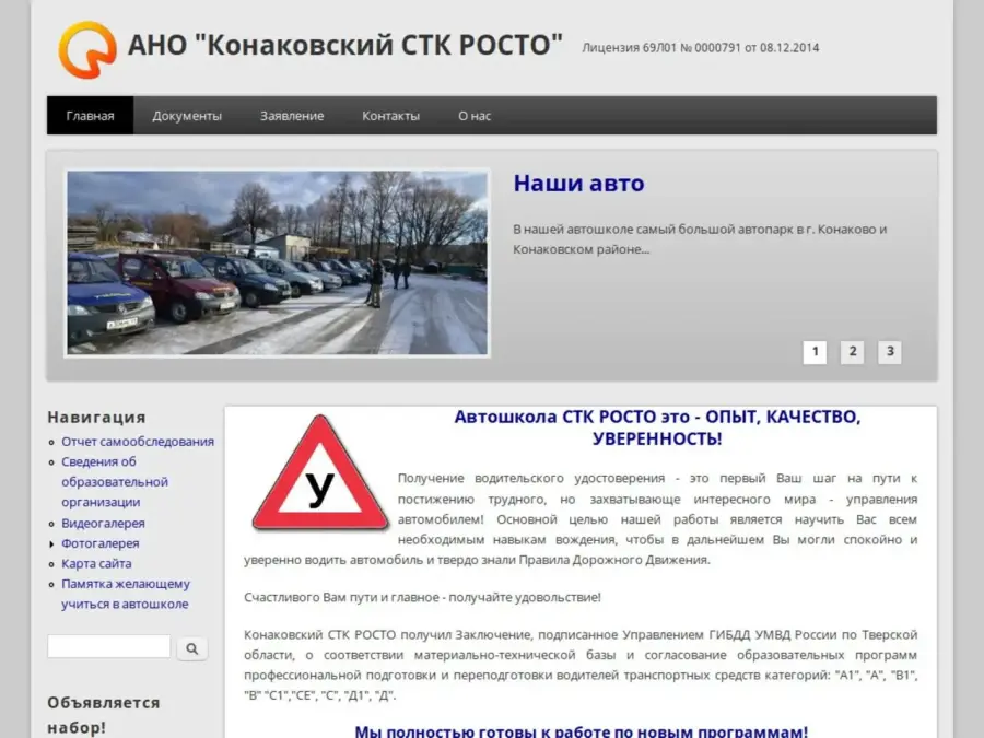 Автошкола СТК РОСТО это - ОПЫТ, КАЧЕСТВО, УВЕРЕННОСТЬ! Получение водительского удостоверения - это первый Ваш шаг на пути к постижению трудного, но захватывающе интересного мира - управления автомобилем! Основной целью нашей работы является научить Вас всем необходимым навыкам вождения, чтобы в дальнейшем Вы могли спокойно и уверенно водить автомобиль и твердо знали Правила Дорожного Движения. Счастливого Вам пути и главное - получайте удовольствие! Конаковский СТК РОСТО получил Заключение, подписанное Управлением ГИБДД УМВД России по Тверской области, о соответствии материально-технической базы и согласование образовательной программы профессиональной подготовки водителей транспортных средств категории «В».
