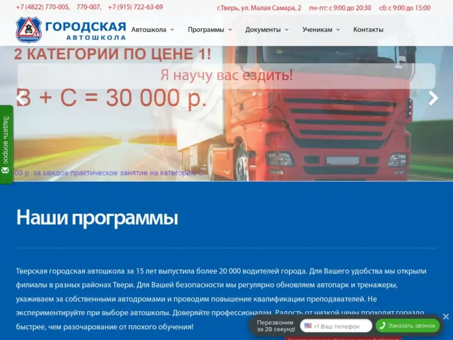 Городская автошкола (ООО "1-я верста) готовит водителей категории А и B. Предоставляем более 30 учебных автомобилей с передним приводом, механической и автоматической коробками передач, ручным управлением для людей с ограниченными возможностями.