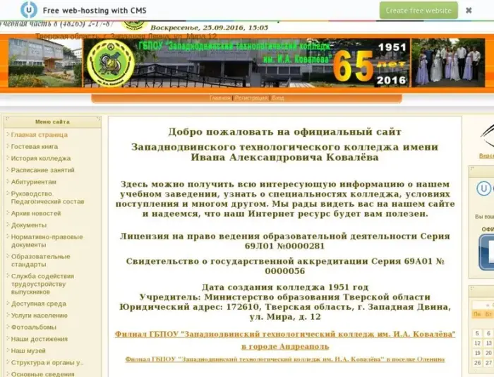 Государственное бюджетное образовательное учреждение среднего профессионального образования "Западнодвинский технологический колледж имени И.А. Ковалева". Подробности по телефону.
