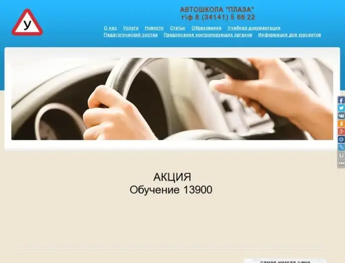 Автошкола "Плаза" предлагает пройти курс обучения вождению автомобиля по программе подготовки водителей транспортных средств категории "В". Продуманный теоретический курс обучения в сочетании с уникальной методикой обучения практическому вождению автомобиля расчитаной на абитуриентов с различными начальными навыками вождения, способствует не только успешной сдаче экзамена в ГИБДД, но и получению стабильных навыков безопасного управления автомобилем.