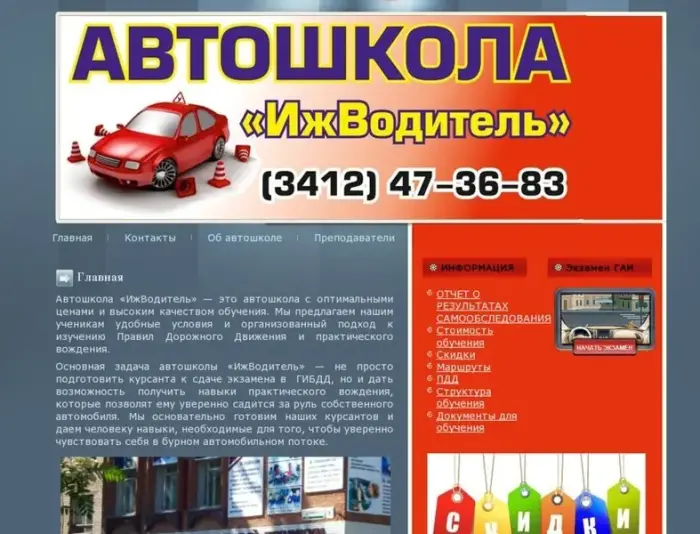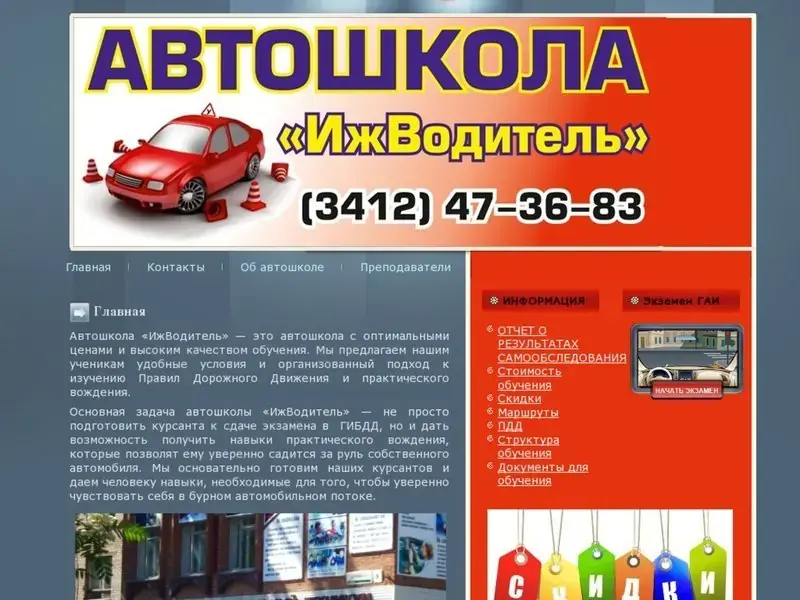 Автошкола «ИжВодитель» — это автошкола с оптимальными ценами и высоким качеством обучения. Мы предлагаем нашим ученикам удобные условия и организованный подход к изучению Правил Дорожного Движения и практического вождения. Основная задача автошколы «ИжВодитель» — не просто подготовить курсанта к сдаче экзамена в ГИБДД, но и дать возможность получить навыки практического вождения, которые позволят ему уверенно садится за руль собственного автомобиля. Мы основательно готовим наших курсантов и даем человеку навыки, необходимые для того, чтобы уверенно чувствовать себя в бурном автомобильном потоке.nАвтошкола «ИжВодитель» предлагает свои услуги ВАМ, начинающие водители! Поэтому в штате наших сотрудников работают самые опытные, высококвалифицированные специалисты, которые сделают Ваше обучение в автошколе максимально комфортным и эффективным. Автошкола «ИжВодитель» грамотно подходит к обучению водителей любого возраста. В нашей автошколе Вы получите самый высокий уровень теоритической и практической подготовки не только для сдачи экзаменов в ГИБДД, но и для самостоятельного вождения на дороге.