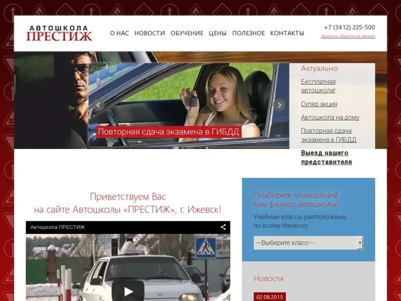 Автошкола «Престиж», г. Ижевск, приглашает Вас пройти курс обучения по программе подготовки водителей транспортных средств категории «В» с последующей сдачей экзамена в ГИБДД и получения водительского удостоверения. Автошкола предлагает практическое обучение вождению автомобиля в любое удобное для Вас время. В нашем автопарке имеются автомобили как отечественного, так и зарубежного производства. Вождение автомобиля для начинающих проводится на специально оборудованном автодроме.