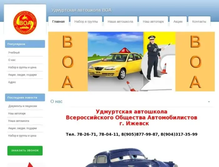 Удмуртская автошкола ВОА осуществляет свою деятельность с 1974 года. Высококвалифицированные преподаватели, инструкторы с большим опытом работы научат Вас уверенности за рулем и помогут побороть страх дороги. Мы можем с уверенностью гарантировать своим курсантам высокий уровень подготовки к экзаменам в ГИБДД. От качества подготовки, от самочувствия за рулем зависит не только Ваша жизнь, но и жизнь многих людей. Новые знания и навыки помогут вам превратиться в умелого, уверенного и осторожного участника дорожного движения. Наша автошкола предоставляет различные виды услуг, в том числе: - подготовка водителей категории "В"; - дополнительные занятия; - обучение на автотренажере; - предоставление парковочных мест на автостоянках Всероссийского общества автомобилистов; - услуги автоэкспертного бюро по оценке автотранспорта.