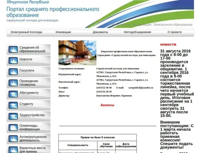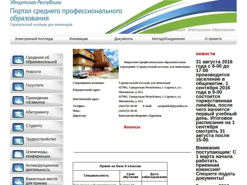Бюджетное профессиональное образовательное учреждение «Сарапульский колледж для инвалидов». Подробности по телефону.
