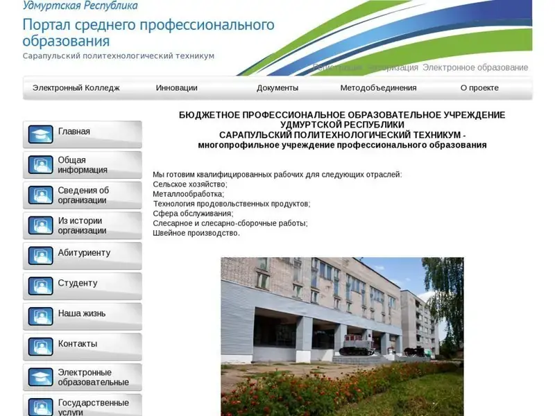 Бюджетное профессиональное образовательное учреждение Удмуртской республики "Сарапульский политехнический техникум" - многопрофильное учреждение профессионального образования.