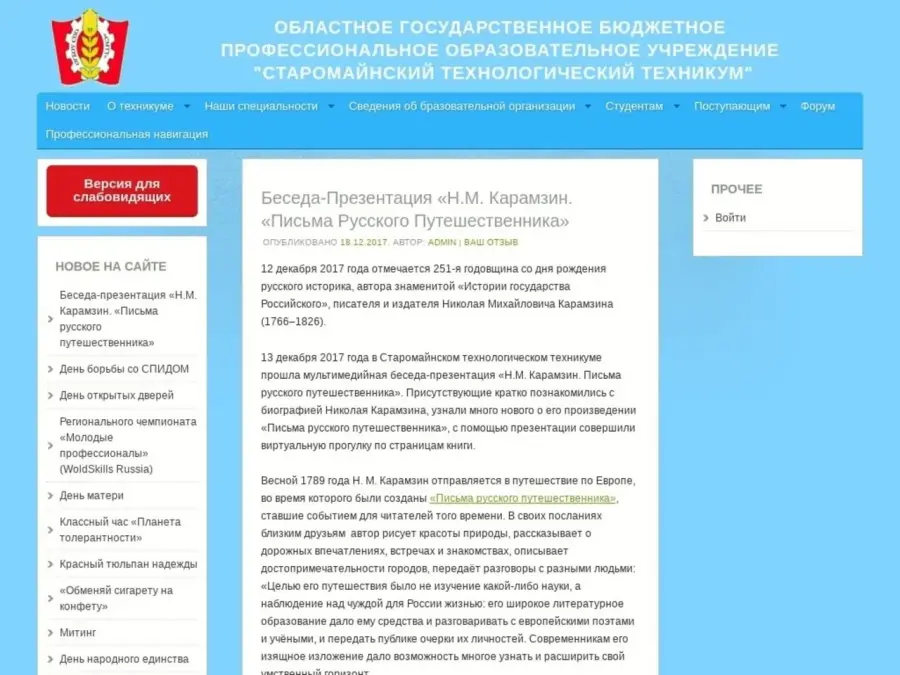 Областное государственное бюджетное профессиональное образовательное учреждение «Старомайнский технологический техникум».