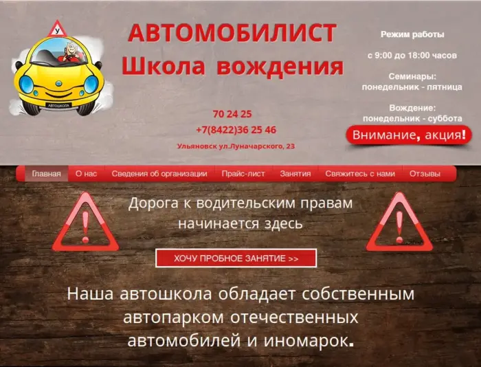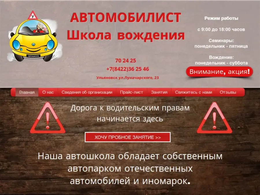 Автошкола в Ульяновске «Автомобилист» на протяжении долгого времени считается одной из лучших в городе. Тщательный и серьезный подход к теоретической подготовке, профессиональные инструкторы по вождению, индивидуальный подход к каждому слушателю и разнообразный автопарк позволяют дать нашим курсантам качественную подготовку и увеличить шансы сдачи экзаменов в ГАИ. Наша автошкола в Ульяновске обладает собственным автопарком, состоящим как из отечественных автомобилей, так и автомобилей импортного производства.