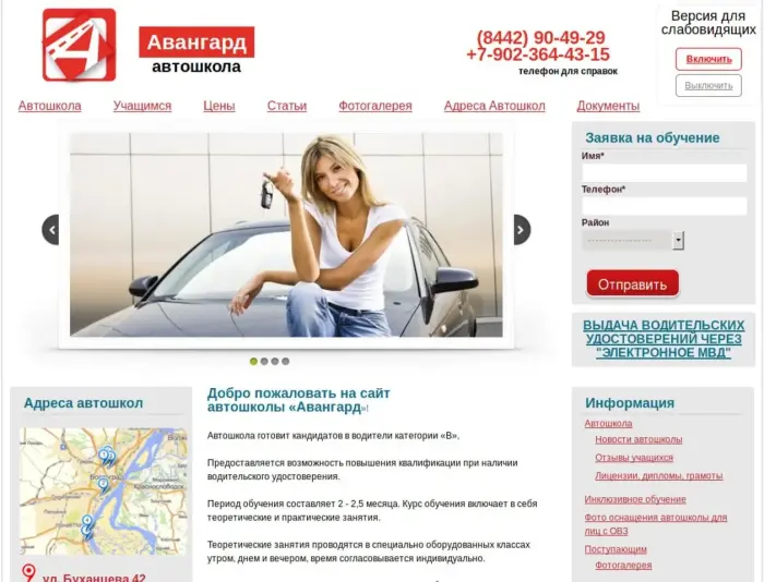 Автошкола "Авангард" (ООО "Авангард" г Волгоград) основана в декабре 1996 года. Вот уже более 15 лет динамично развиваясь, мы занимаемся профессиональной подготовкой водителей транспортных средств категории "В". На сегодняшний день автошкола "Авангард" это не курсы вождения, не автокурсы в привычном нам понимании, а настоящая кузница по подготовке профессиональных водителей. Мы всегда стремимся находиться в авангарде передовых достижений в области образования.