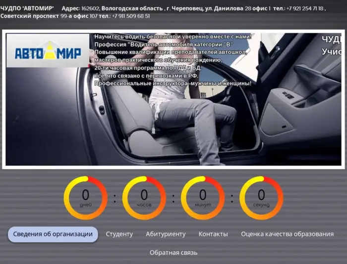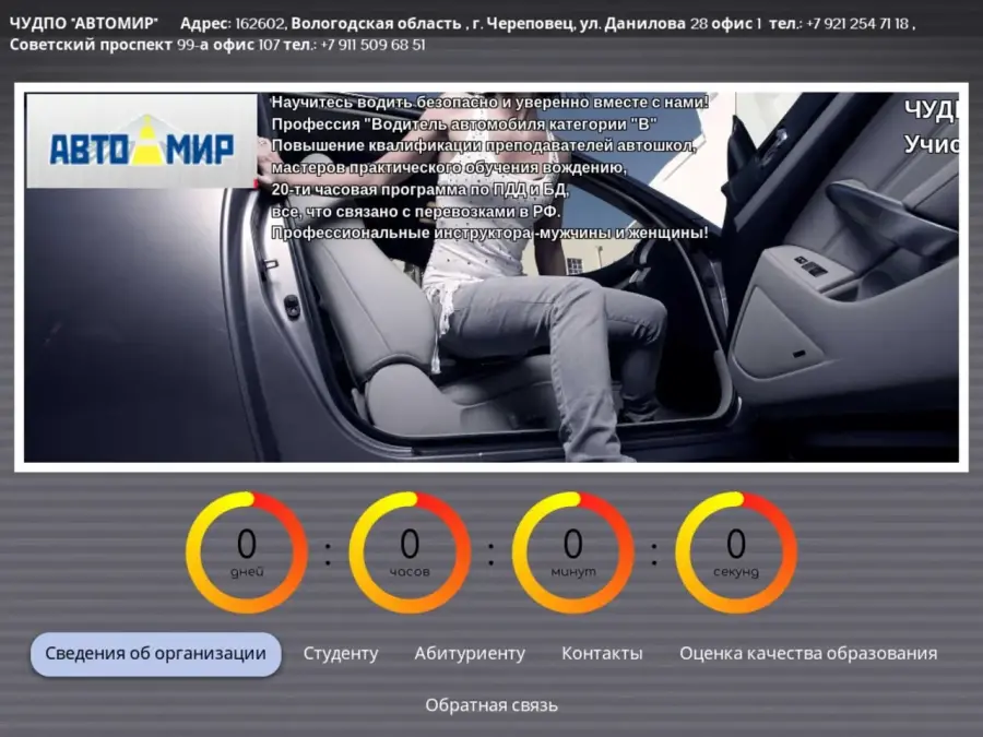 После регистрации в ЧНОУ "АВТОМИР" наши профессиональные сотрудники приложат все усилия, чтобы Вы стали самым безопасным водителем. Мы гарантируем Вам интересные теоретические и практические занятия, подготовленные профессиональными инструкторами. Все автомобили, используемые для обучения, проходят профилактическое обслуживание и ежегодный технический осмотр. Нашей школе крайне важно иметь надлежащий парк автомобилей и команду профессиональных преподавателей, чтобы предоставлять услуги на соответствующем уровне. Мы готовим студентов к тому, чтобы они водили безопасно в течение всей жизни, а не только во время сдачи экзамена. Поскольку при обучении мы применяем высокие стандарты, коэффициент успешной сдачи экзаменов у нас довольно высокий. ЧНОУ "АВТОМИР" гарантирует вам высокий стандарт обучения и конкурентные цены. В ЧНОУ "АВТОМИР" мы работаем индивидуально с каждым учеником и гарантируем их полную удовлетворенность.
