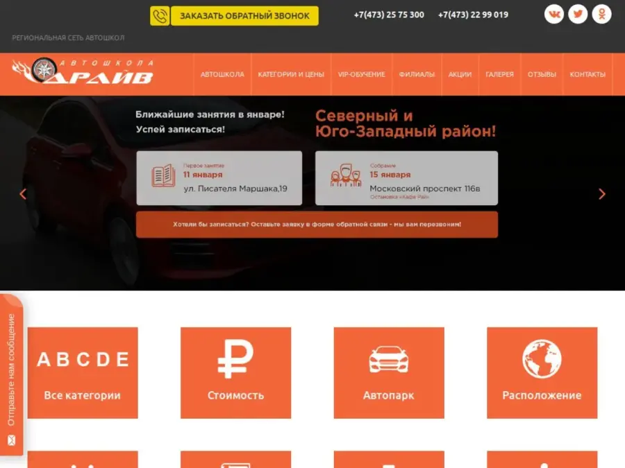 "Сеть автошкол Драйв гарантирует качественное обучение безаварийному вождению, по окончании которого Вы будете уверенно управлять автомобилем!"