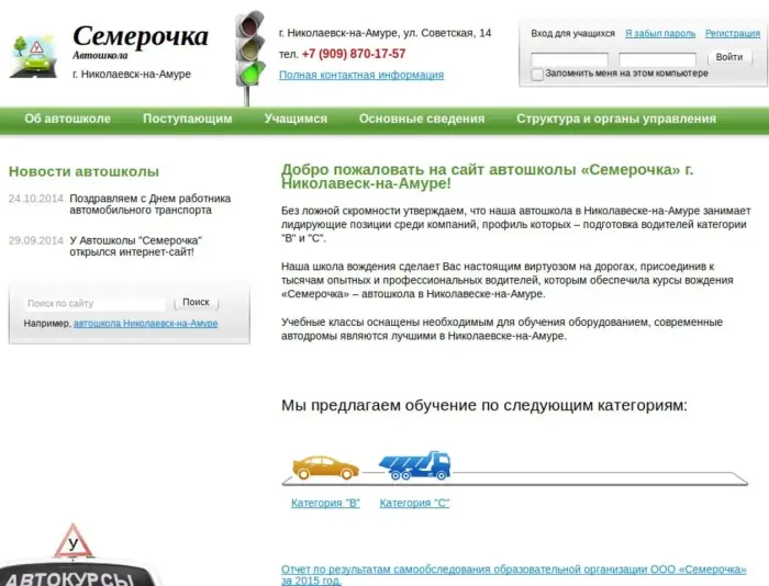 Без ложной скромности утверждаем, что наша автошкола в Николавеске-на-Амуре занимает лидирующие позиции среди компаний, профиль которых – подготовка водителей категории "В" и "С". Наша школа вождения сделает Вас настоящим виртуозом на дорогах, присоединив к тысячам опытных и профессиональных водителей, которым обеспечила курсы вождения «Семерочка» – автошкола в Николавеске-на-Амуре. Учебные классы оснащены необходимым для обучения оборудованием, современные автодромы являются лучшими в Николаевске-на-Амуре.