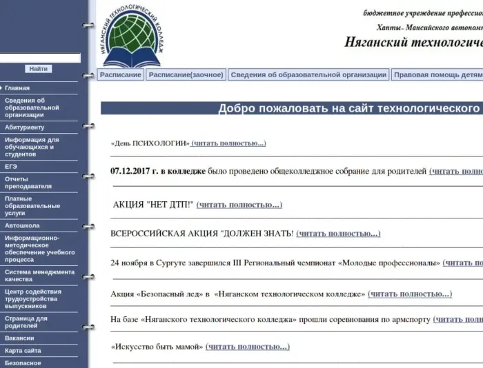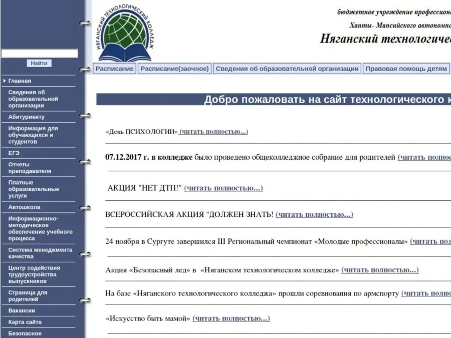 БУ ПО ХМАО-Югры "Няганьский технологический колледж".